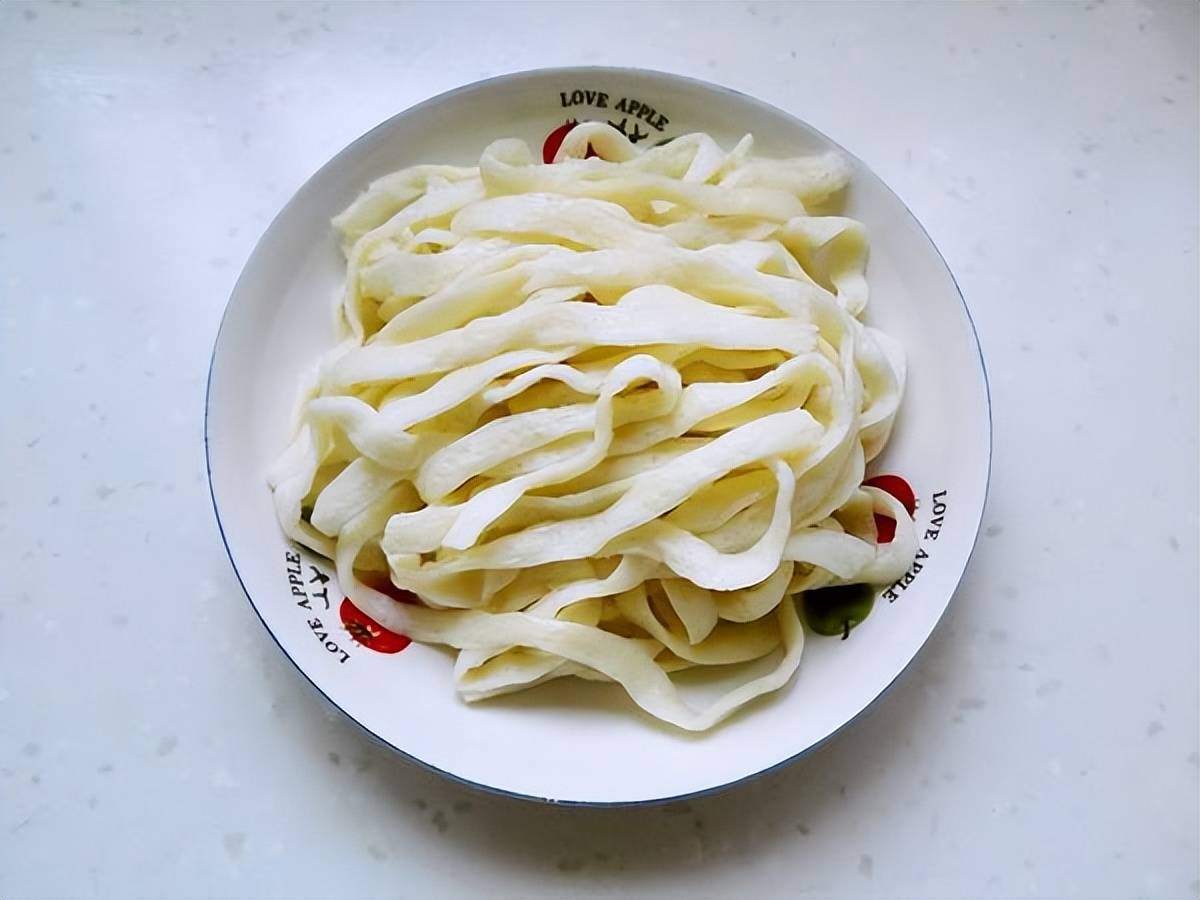 特色的牛筋面制作的时候,和制作手工麻辣条一样,和面比例是500克面粉,250克水,5克盐,揉成面团醒发30分钟,然后就可以放到机器里压牛筋面了,牛筋面根据模具不用,有原的,还有扁的,都是好卖,压好的牛筋面是要浸泡一下,让它的气孔充分的吸收水分,然后就可以制作,调味了