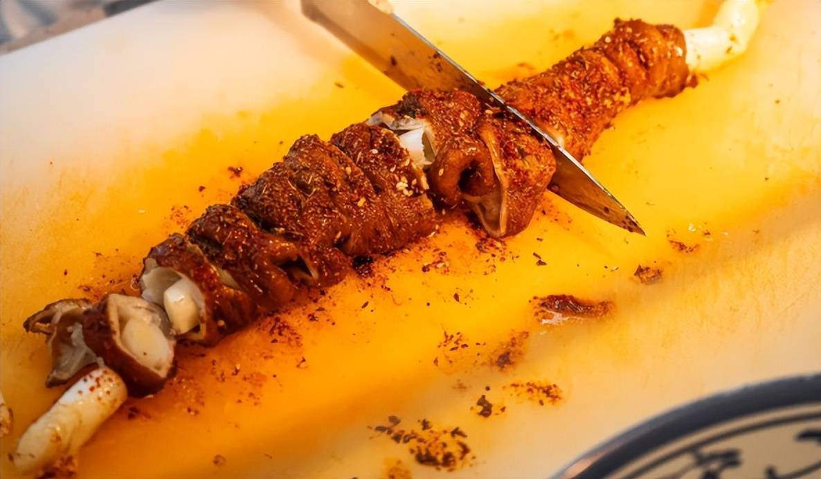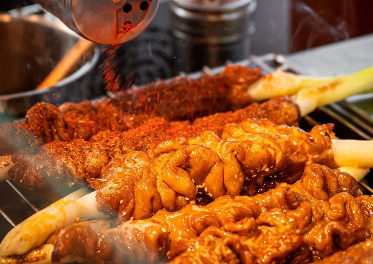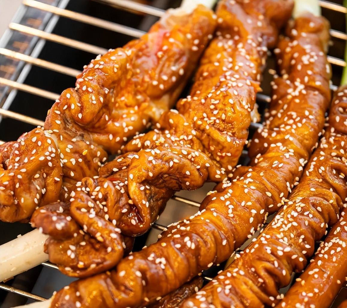 这种街头美食是四川和重庆一带的特色美食,把粗壮的山东大葱和江油肥肠结合起来,烤的外焦里嫩,大葱很好的中和了肥肠的肥腻,在烧烤架子上经过高温烘烤,已经把油脂充分的逼出来,出来的口感外焦里嫩,十分吸引人
