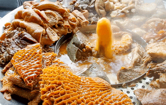 当然必不可少得就是放大骨头,和牛肉,精心熬制出来的底汤,再配上牛肚,牛肺,牛头,牛肠,牛肝等,食材的去腥十分关键,前期的浸泡去除血水,焯水,以及香料的把控,是最为重要的
