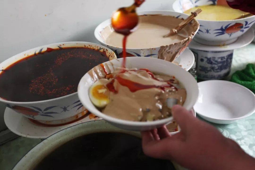 卤汁凉粉的调味,有核心的蒜泥汁,芝麻酱汁,还有芥末,辣椒油,香油,醋水,盐等