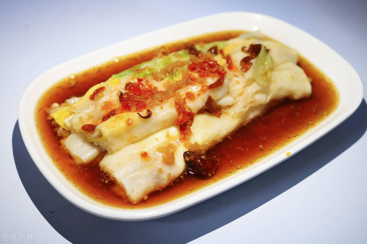 肠粉是经典的广东传统美食,在广东,肠粉不管男女老少都特别喜欢吃,肠粉白如雪,薄如纸,油光闪亮,香滑可口,是肠粉最大的特色。