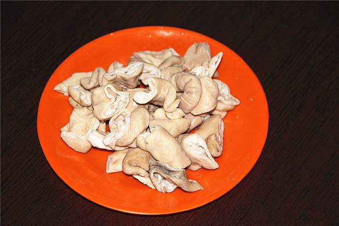 1、将猪肠、猪肺、猪心、猪骨洗净理好,放入开水锅内煮沸,撇去浮沫,转用小火炖,同时用鲍鱼袋装上姜块、葱花、花椒,干辣椒放锅里一起煮,待猪杂炖软烂后捞起备用。