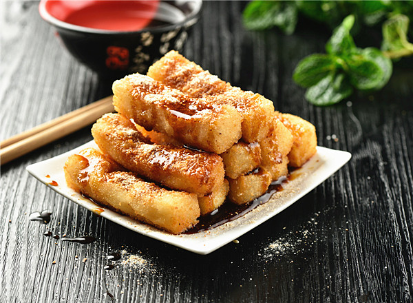 1.糍粑要逐条放油锅,如果下锅就翻动,因冷冻糍粑条突然遇热的油温会粘筷子,相互碰撞也会粘连,等炸至边沿起硬壳可翻动。