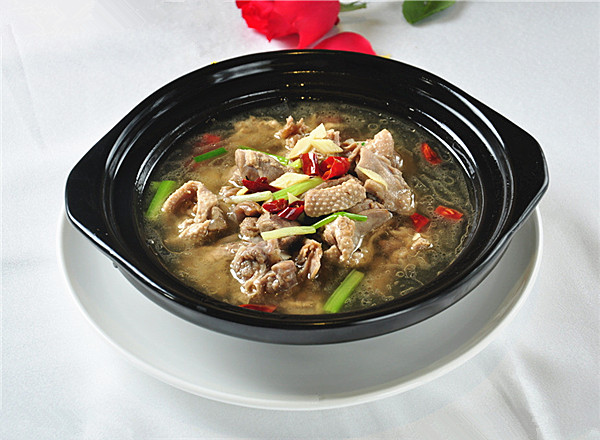 4、食用时将整鹅切成小块,将汤汁(咸淡可以根据当地人的口味把握)浇上即可。