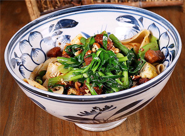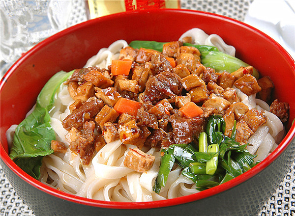 拌面做法是把沥干的面条拌以酱料的食物,有时亦会加上一些配菜食用,在中国很流行。陕西面食以它独特的味道闻名天下,获得了人们的青睐!其面条宽窄各异,厚薄均匀,荤素搭配得当,味道酸辣,筋韧爽口,老幼皆宜。