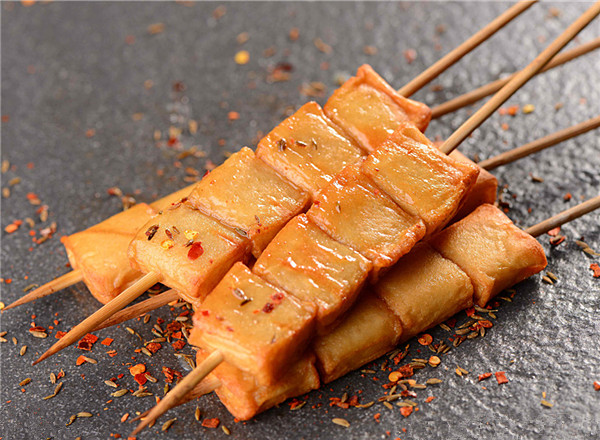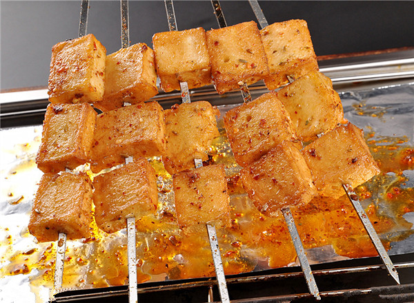 烤鱼豆腐是一道在烧烤摊上经常见的一道美食,烤鱼豆腐在不变鱼豆腐本质的基础上加入各类调料,孜然,辣椒面等调料进行烘,烤。这类美食可口又好吃,不像羊肉串油腻,不像烤蔬菜一样干瘪,美味而又营养。