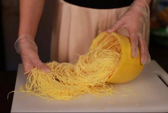 金丝绞瓜的瓜皮色泽金黄,瓜瓤天然成丝似鱼翅,味道甘甜爽脆口感似海蜇,被誉为“植物鱼翅,天然海蜇”,有清热解毒、降压减肥的功效。凉拌食用,清香嫩脆、十分爽口。