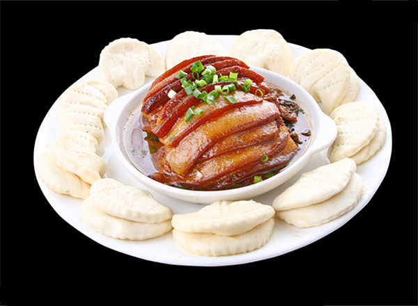 梅菜扣肉是广东传统名菜,制作材料有五花肉、梅菜、葱白等。吃起来肉烂味香,甜中带咸,肥但不腻。搭配特有的荷叶饼也是不错的选择。