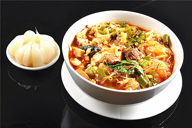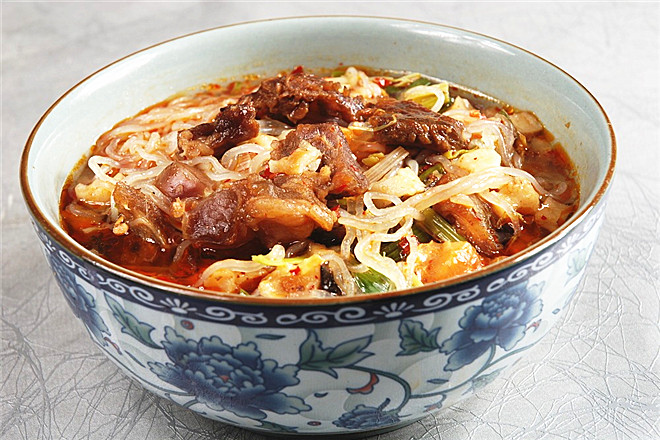9.炒好的菜不要盛出直接加煮肉的汤、水(2:1)煮开放粉丝。
