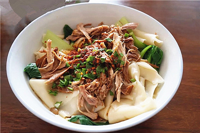腊汁肉揪面片是属于干拌面类型的,没有汤,没有菜。一大碗的面片配上几块让人垂涎的腊汁肉,简单的甚至都不需要再加醋和辣子。也就是这么一份简单的面片,尽显出关中汉子的豪爽与朴实,面汤免费。