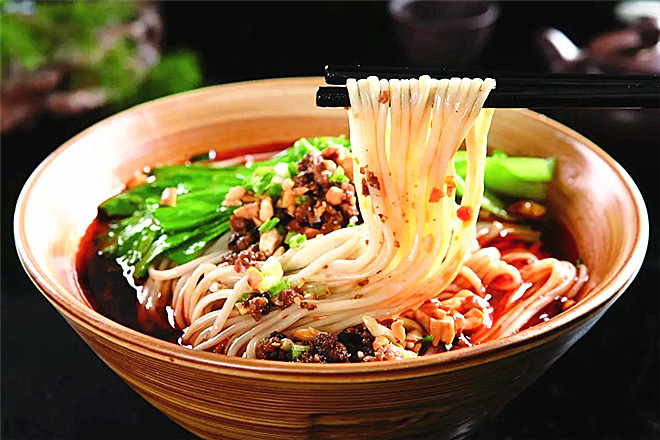 担担面是四川民间极为普遍且颇具特殊风味的一种著名小吃。因常由小贩挑担叫卖,由此得名。此面色泽红亮,冬菜、麻酱浓香,麻辣酸味突出,鲜而不腻,辣而不燥,堪称川味面食中的佼佼者。其面条细滑,主要佐料有红辣椒油、肉末、川冬菜、芽菜、花椒面、红酱油、蒜末、豌豆尖和葱花等,口味油香麻辣,比较适口。担担面相传为1841年一个绰号叫做陈包包的自贡小贩创制,因为早期是用扁担挑在肩上沿街叫卖,所以叫做担担面。无论任何时候,有美食的地方,就有人流量,小吃让这座城市更显亲切与温馨,更吸引越来越多的人纷纷来到西安,小吃成为各个城市的一道靓丽风景线,独显其别样的魅力与风采。