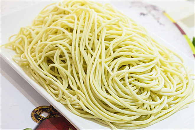 1.将面粉与鸡蛋加水和成面团,擀好切成细面条。豆粉用作擀面时的散粉。