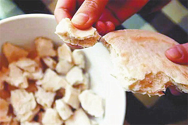 2.浇肉汤时,有讲究,要从碗边分次浇入,每次量要适宜,渗入后再浇,至渗透为止。