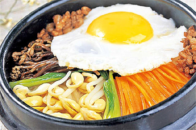 "石锅拌饭"又称"韩国拌饭"、"石碗拌饭",是朝鲜半岛以及中国东北地区黑龙江、吉林、辽宁特有的米饭料理。 它的发源地为韩国全罗北道,后来演变为朝鲜半岛的代表性食物。是朝鲜半岛三大名菜(平壤冷面,开城汤饭,全州拌饭)之一。