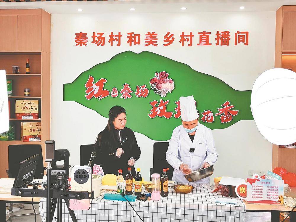 泗县和美乡村直播间展示金丝绞瓜加工过程。通讯员吴天元摄